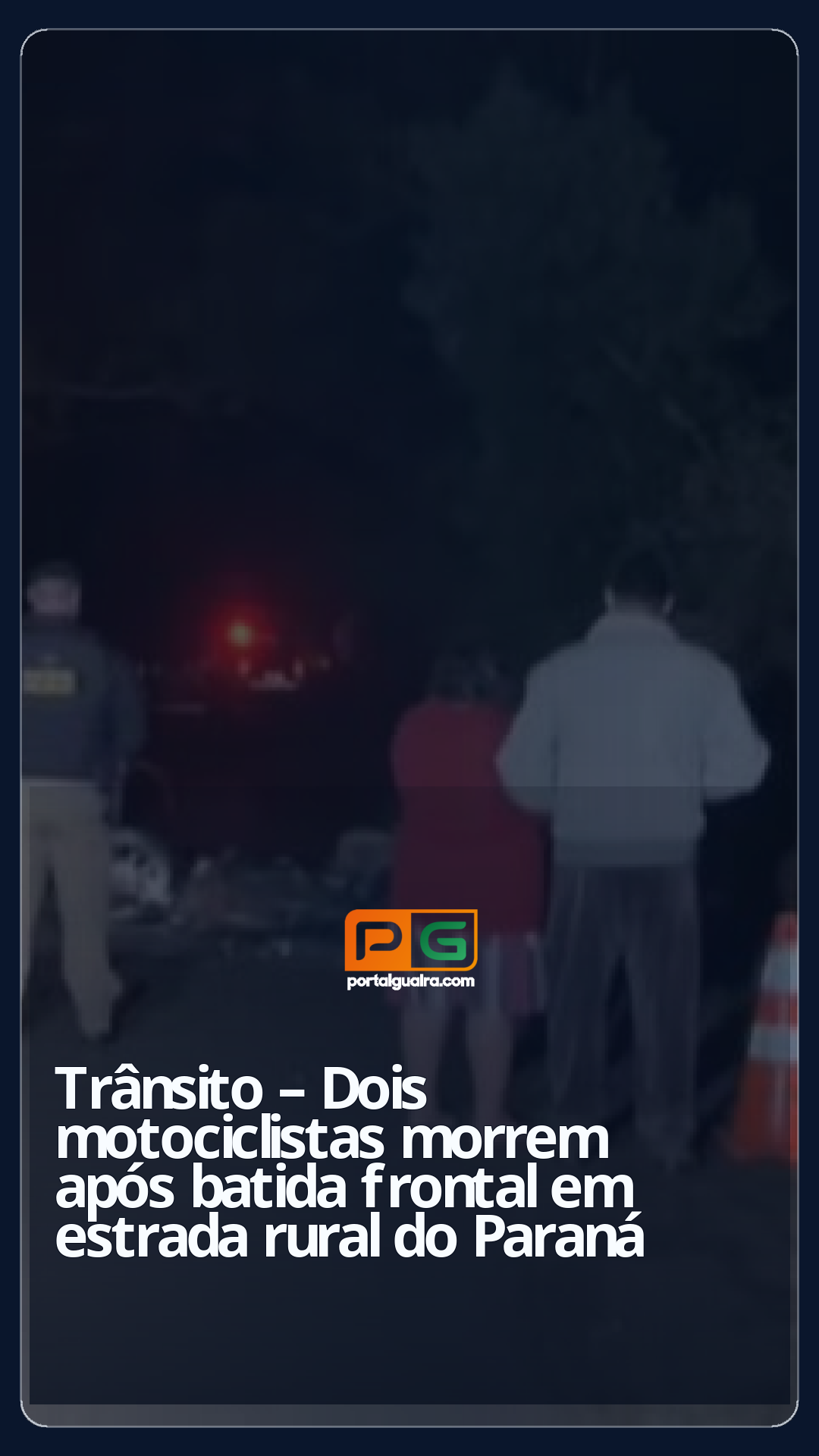 Dois motociclistas morreram após um acidente em Tamarana, no norte do Paraná. Na noite de segunda-feira (9), eles se envolveram em uma batida frontal na Estrada Sebastião Pinto, perto de uma vila rural, segundo a Polícia Militar (PM-PR).