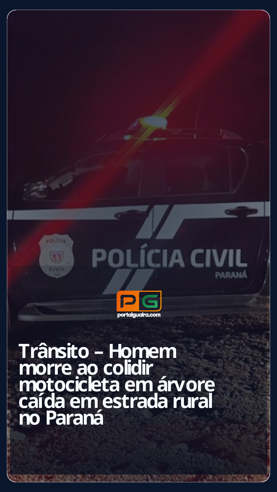 O sinistro de trânsito foi registrado na noite de sábado (18), por volta de 20h, em uma estrada rural na Fazenda Mazurana, Dois Vizinhos, envolvendo uma motocicleta Honda/XRE, conduzida por Silvio Tireli, 55 anos.