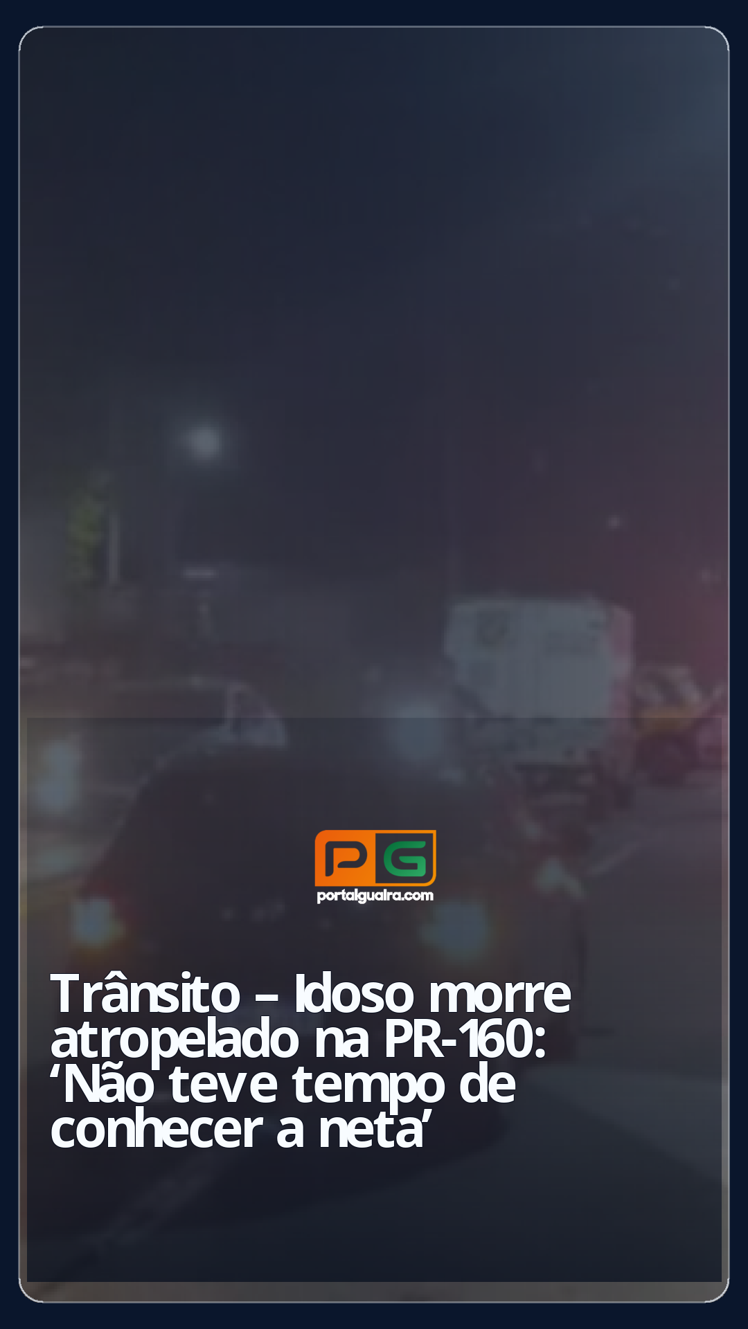 Um idoso de 62 anos morreu atropelado na noite de sábado (27), na PR-160, em Telêmaco Borba, nos Campos Gerais do Paraná. A vítima foi identificada como Jair Augusto Moreira.