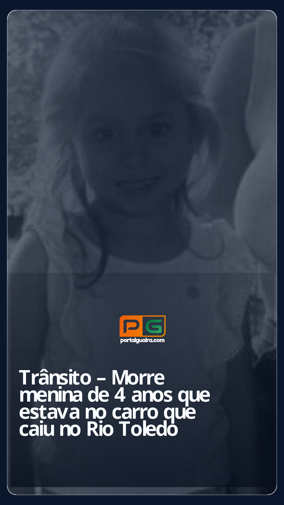 Samily Eduarda, de 4 anos, morreu na madrugada deste sábado (20). Ela estava no carro que capotou e caiu dentro do Rio Toledo na manhã de sexta-feira (19). A informação foi confirmada ao Catve.com pela tia da menina.