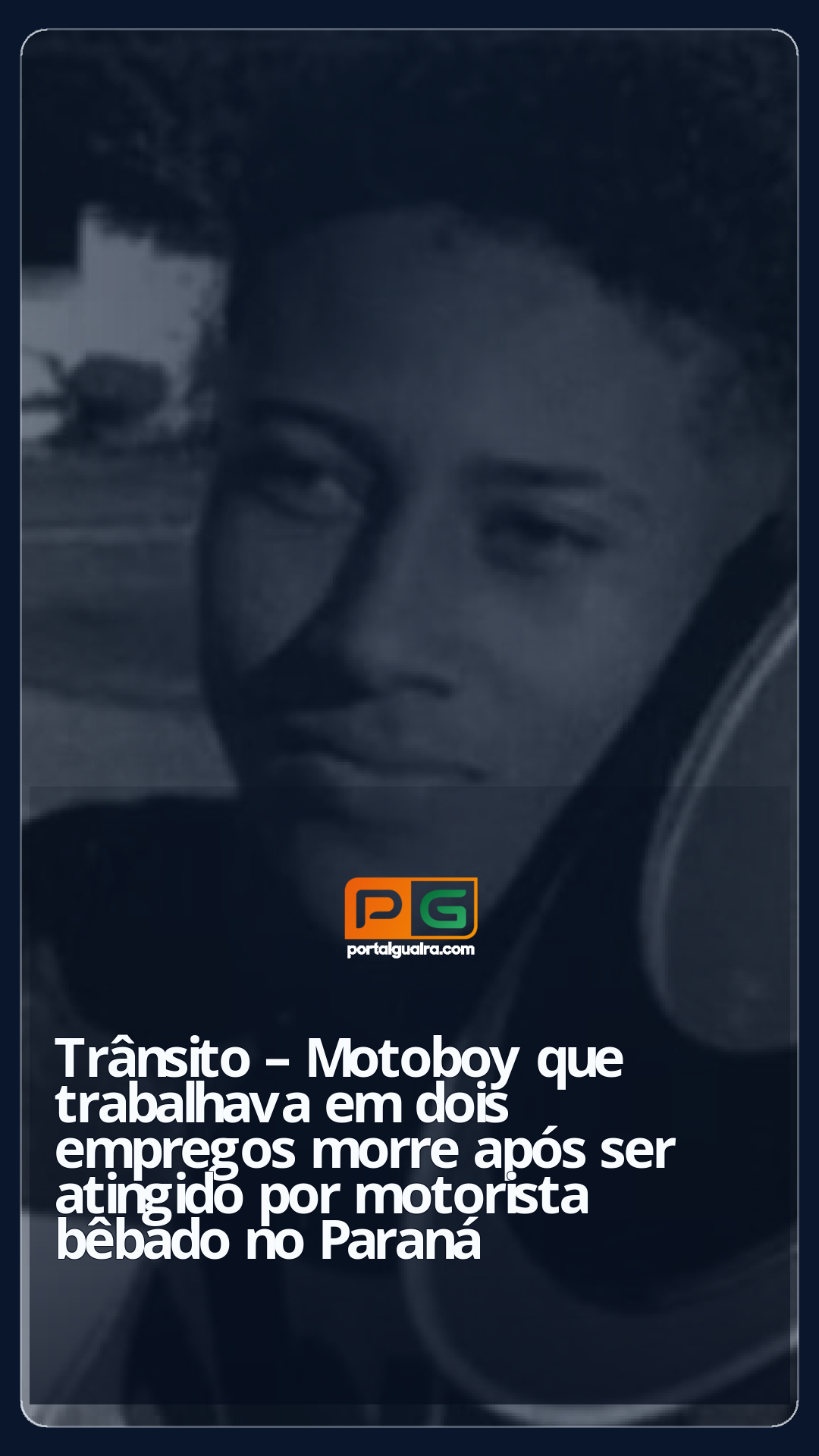 O motoboy Guilherme França, de 21 anos, morreu na noite de quinta-feira (28) depois de ter sido atingido por uma caminhonete conduzida por um motorista bêbado que invadiu a contramão, em Colombo, na Região Metropolitana de Curitiba.