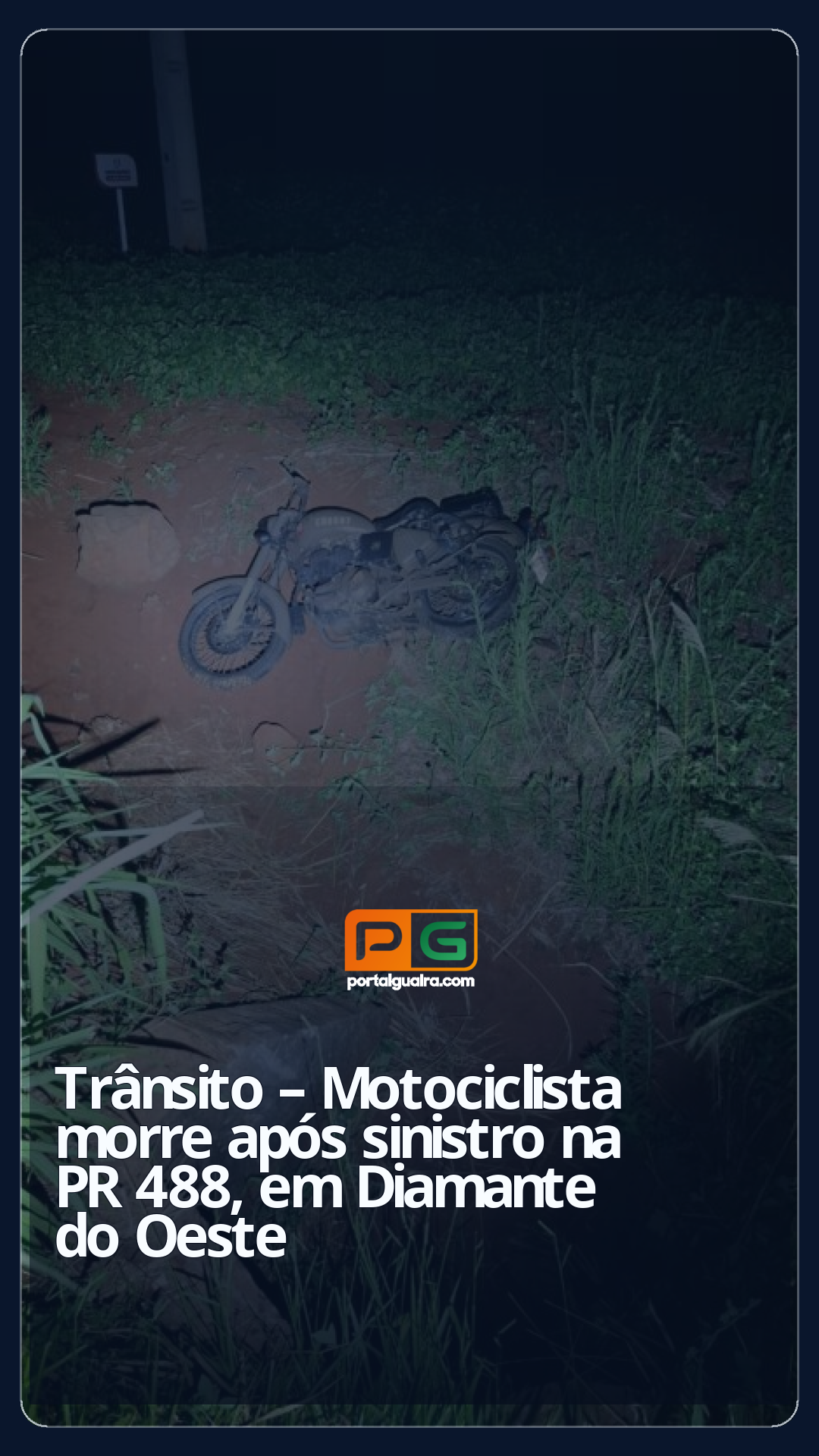 Conforme o relato policial, a motocicleta trafegava pela PR-488 no sentido de Vera Cruz do Oeste a Diamante do Oeste quando, ao atingir o referido quilômetro, o condutor se envolveu em um sinistro de tipo não identificado. Não houve testemunhas ou declarantes, e a motocicleta foi encontrada fora da pista, em meio à vegetação às margens da rodovia.
