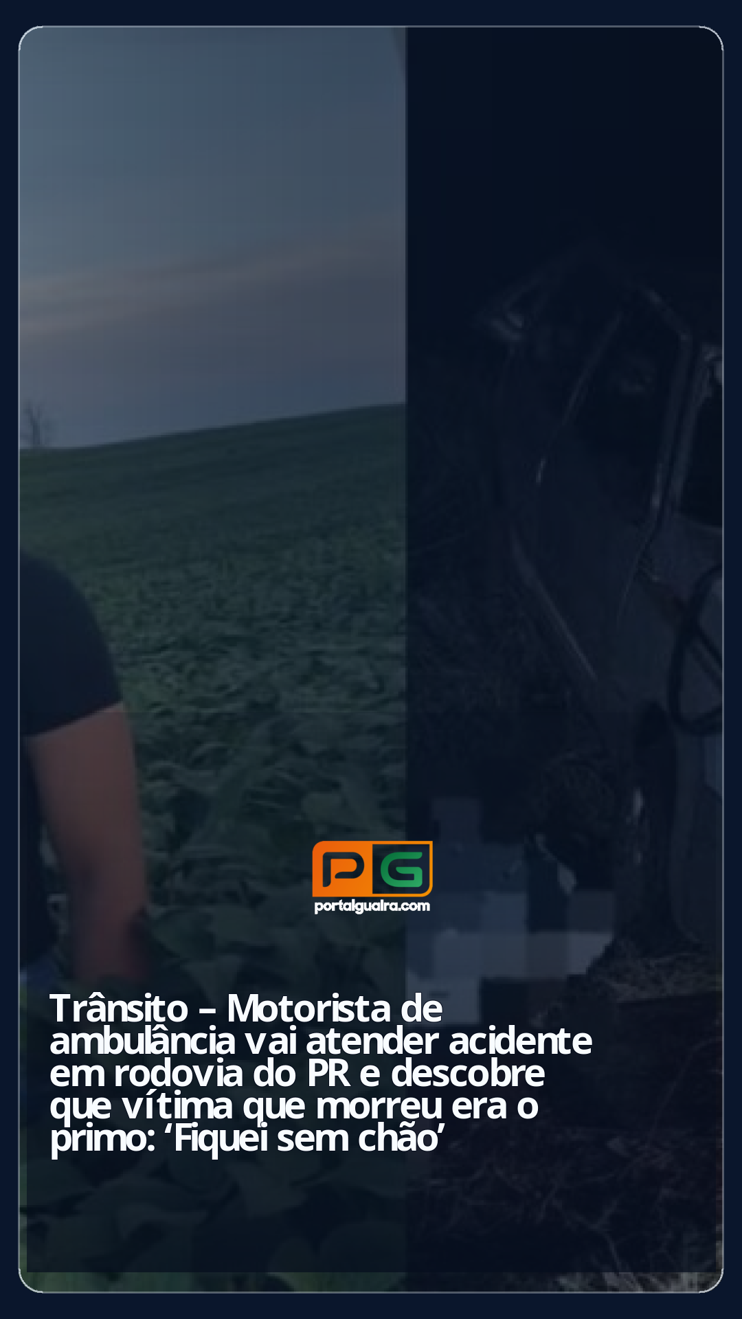 O motorista de ambulância José Fernando Lamounier, de 43 anos, descobriu que o primo havia morrido durante o atendimento de um acidente na PR-170, em Borrazópolis, no norte do Paraná. A vítima, identificada como Edwilson Fernandes Spósito, de 32 anos, foi encontrada fora do carro em um barranco e teve a morte constatada ainda no local.
