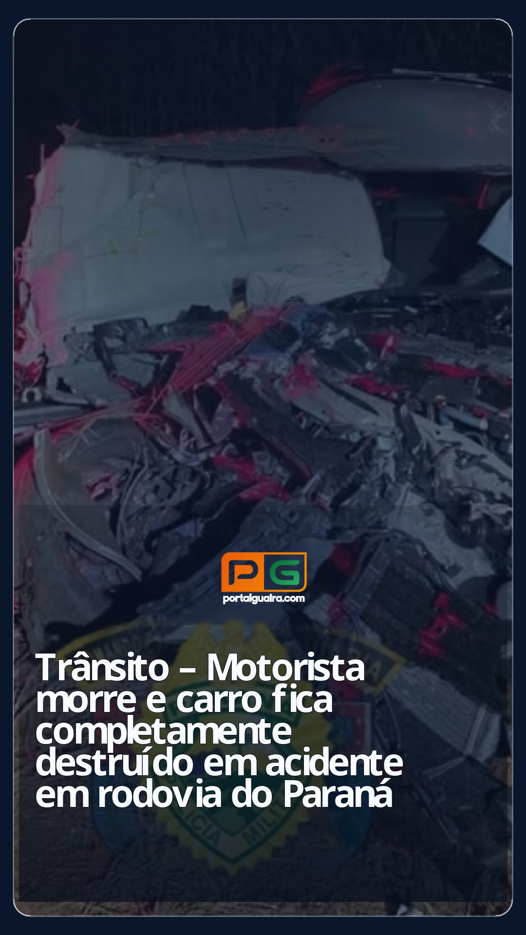 O motorista de um carro morreu e o veículo ficou completamente destruído em um acidente que aconteceu na madrugada de sábado (14) na PR-445 em Londrina, no norte do Paraná.