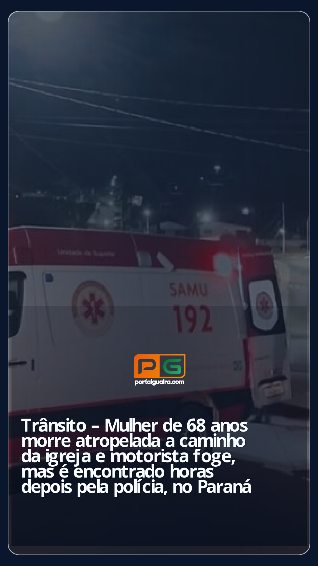 Um homem foi preso pela Polícia Militar do Paraná (PM-PR) por atropelar uma mulher de 68 anos, em Guarapuava, na região centro-sul do estado. Conforme a polícia, o homem fugiu sem prestar socorro após o atropelamento, que aconteceu por volta das 19h do último sábado (19).