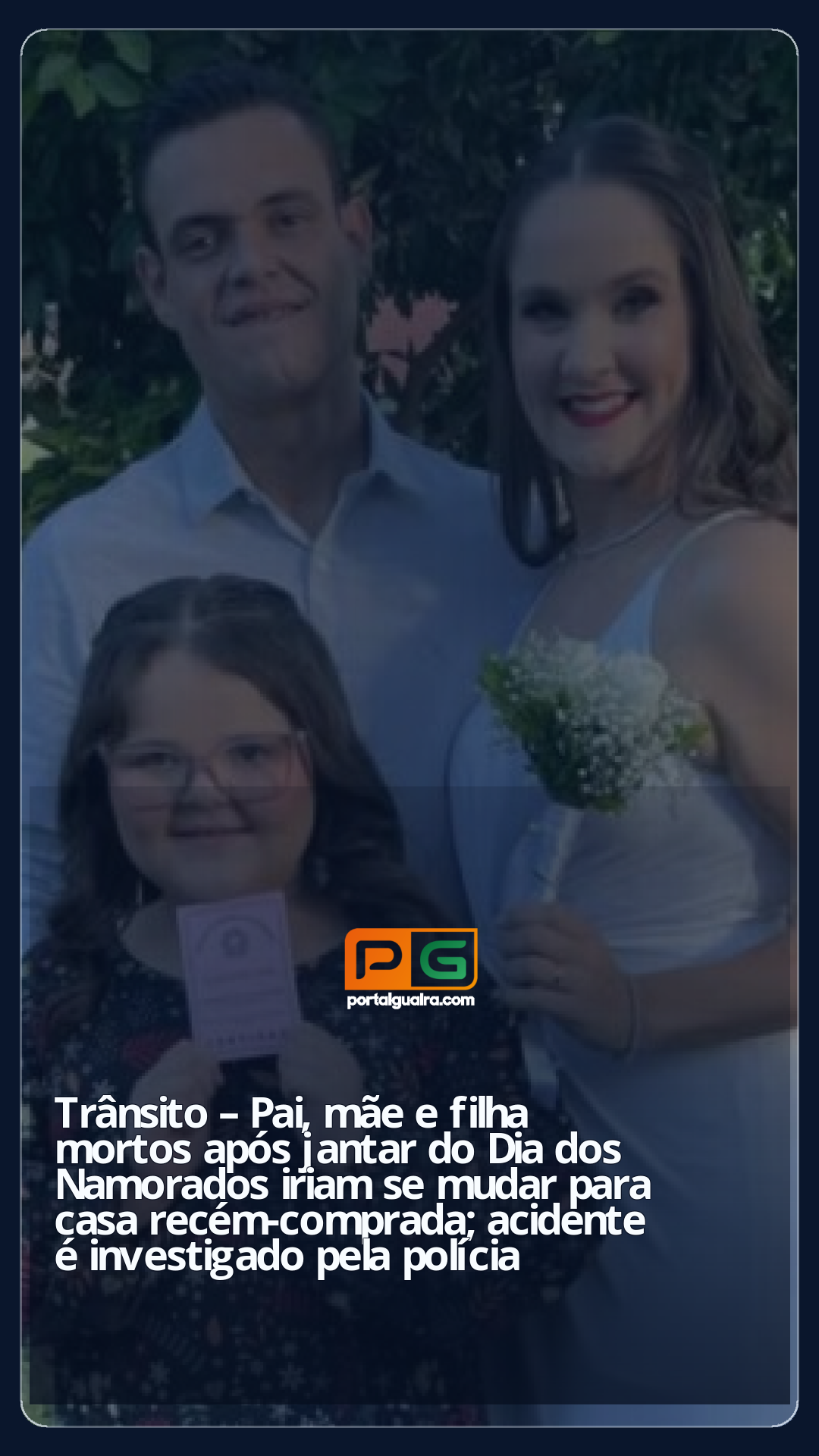 A família que morreu em um acidente na PR-897, em Marialva, no norte do Paraná, após voltar de um jantar de Dia dos Namorados, iria se mudar para uma casa recém-comprada. Andressa Feliciano, de 27 anos, Maycon Lennon, de 34, e a filha deles Eloísa Feliciano Gimenes, de 8, trocariam de endereço depois de uma reforma o imóvel, segundo a família