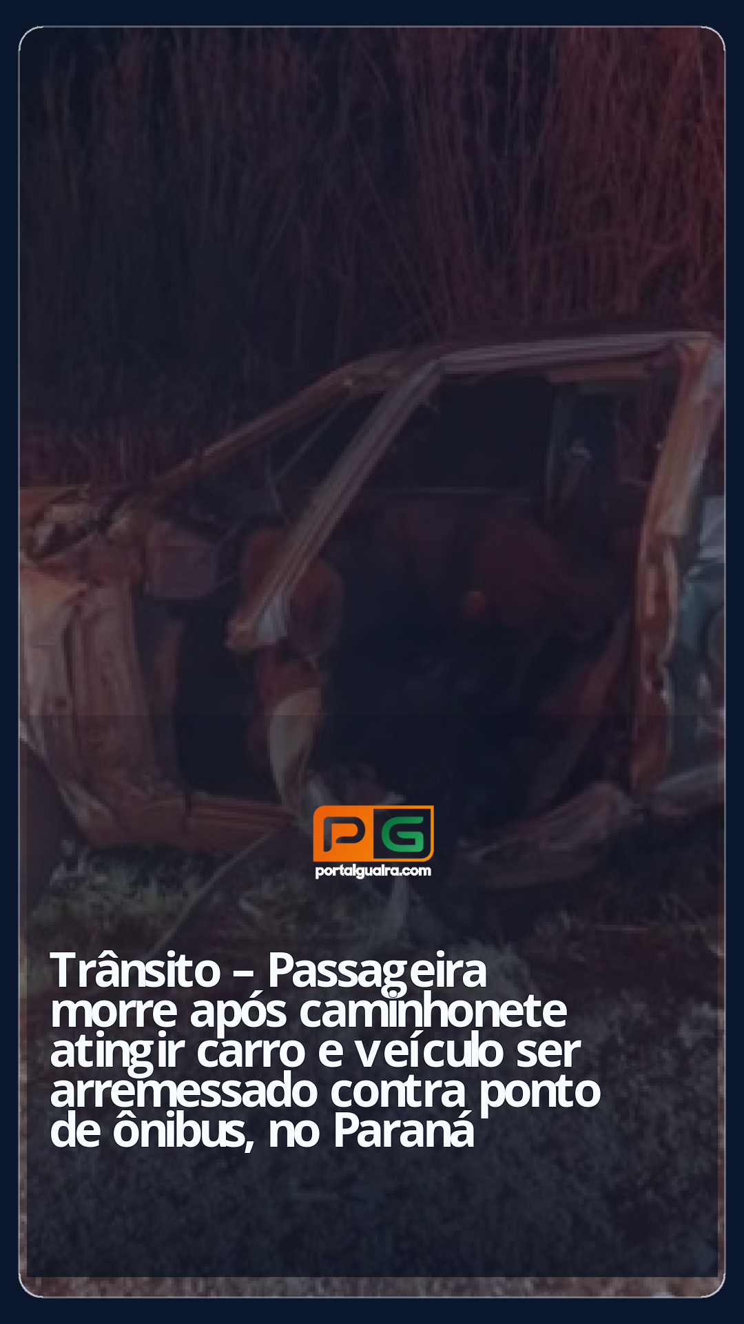 Uma jovem de 21 anos morreu na noite de sábado (9) após uma caminhonete atingir o carro em que ela estava, e o veículo ser arremessado contra um ponto de ônibus na PR-360 em Pitanga, na região central do Paraná.