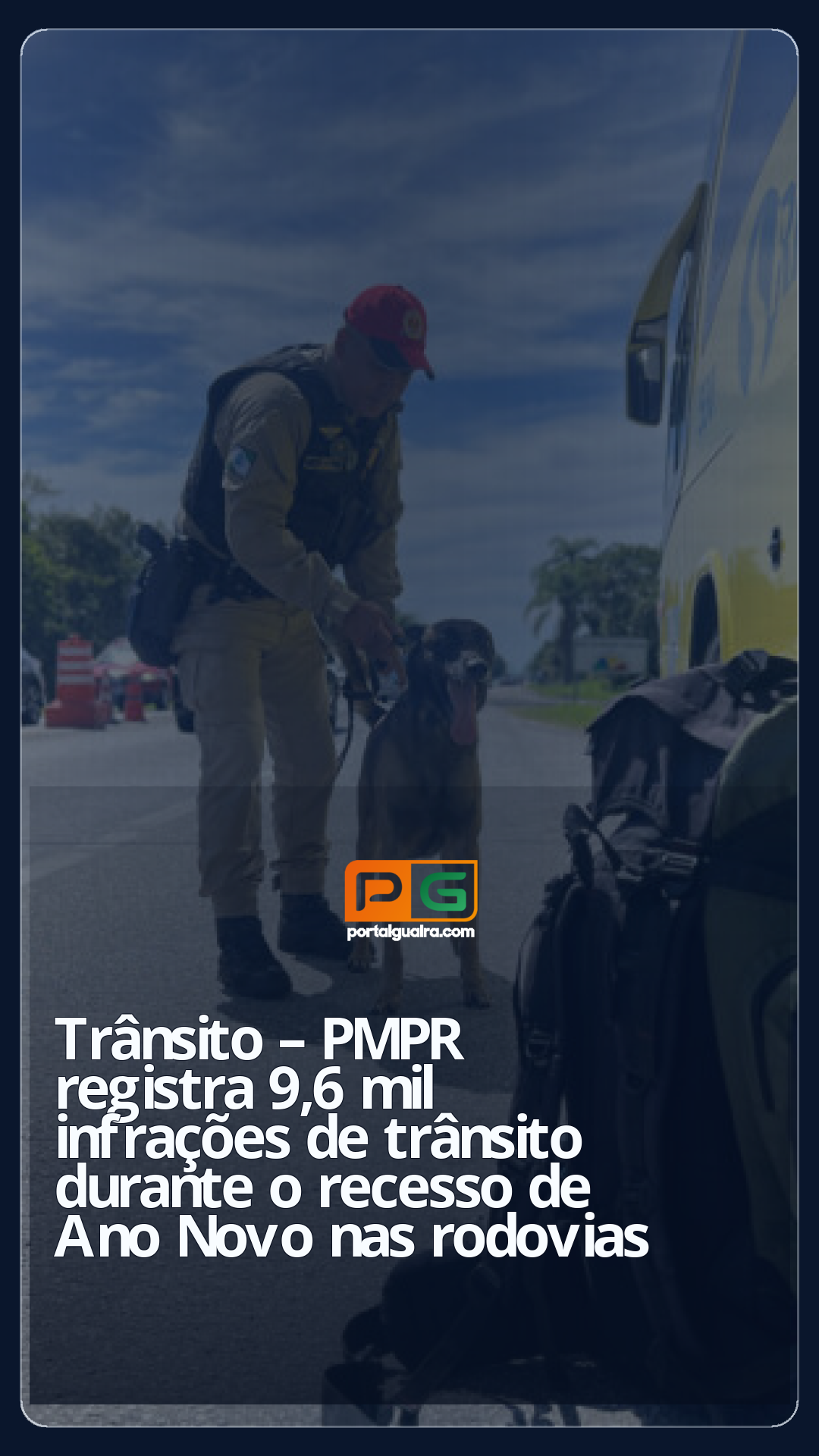 A Polícia Militar do Paraná (PMPR), por meio do Batalhão de Polícia Rodoviária (BPRv), registrou 9.664 infrações de trânsito nas rodovias estaduais do Paraná entre a zero hora de terça-feira (30) e a zero hora de segunda-feira (5), durante as ações de fiscalização do Ano-Novo. O período contou com reforço no policiamento devido ao aumento do fluxo de veículos, com foco na segurança viária.