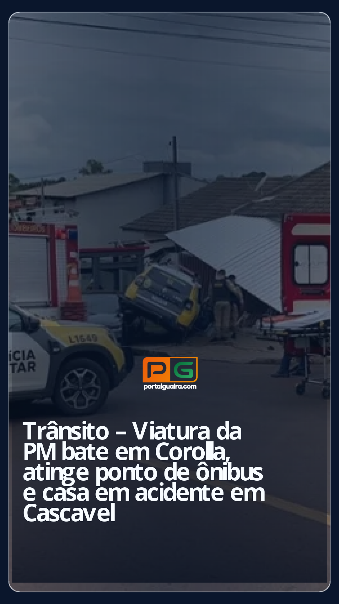 Um grave acidente foi registrado na tarde de quinta-feira (13) no bairro Interlagos, em Cascavel, envolvendo uma viatura da PM (Polícia Militar). O veículo oficial, do modelo Renault Duster, colidiu com um Toyota Corolla e, em seguida, atingiu um ponto de ônibus e a entrada de uma residência.
