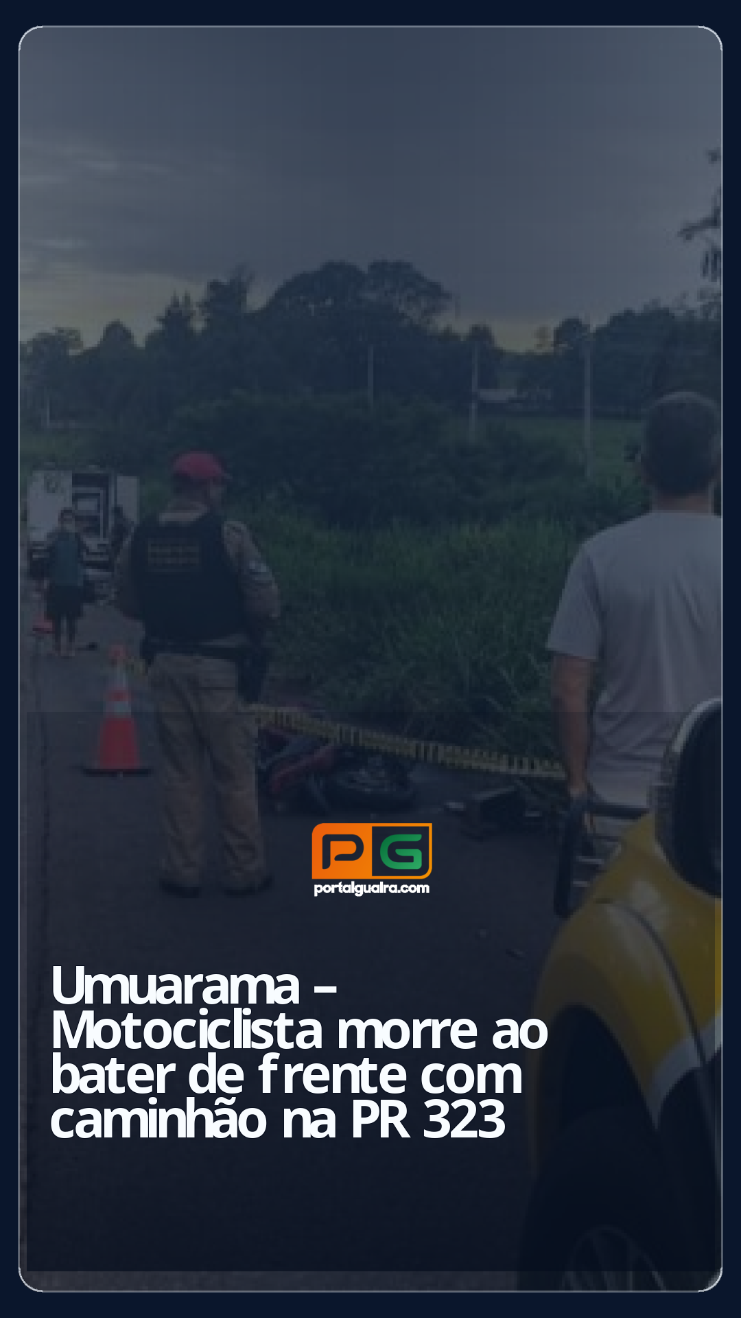 Motociclista, de 28 anos, morreu ao bater contra um caminhão na PR-323, em Umuarama, no Noroeste do Paraná.